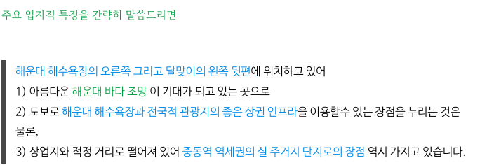 - 바다조망기대, 지하철 도보이용 (준역세권), 좋은 주거환경, 아름다운 달맞이