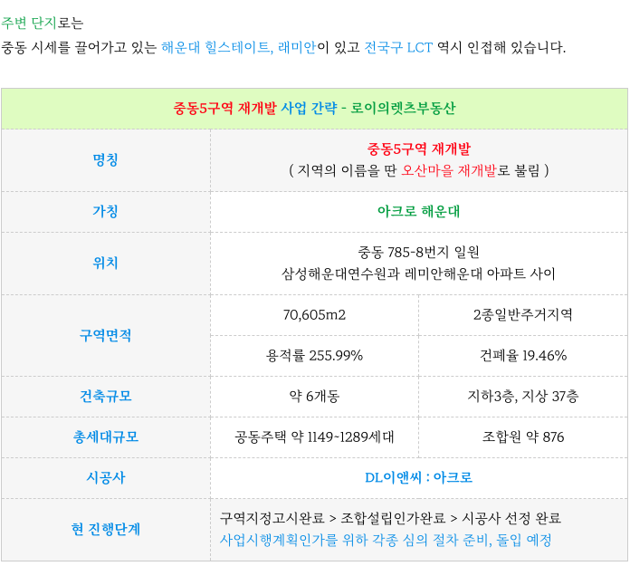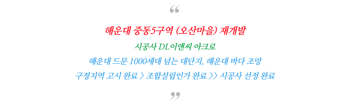 안녕하세요 로이의렛츠부동산 ( 제이에이케이 부산 부동산중개법인 ) 입니다 오늘은 해운대 중동5구역 재개...