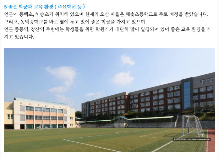 학교로는 동백중학교를 끼고 있으며 가까이 해송초등학교가 가까이에 위치해 있습니다.