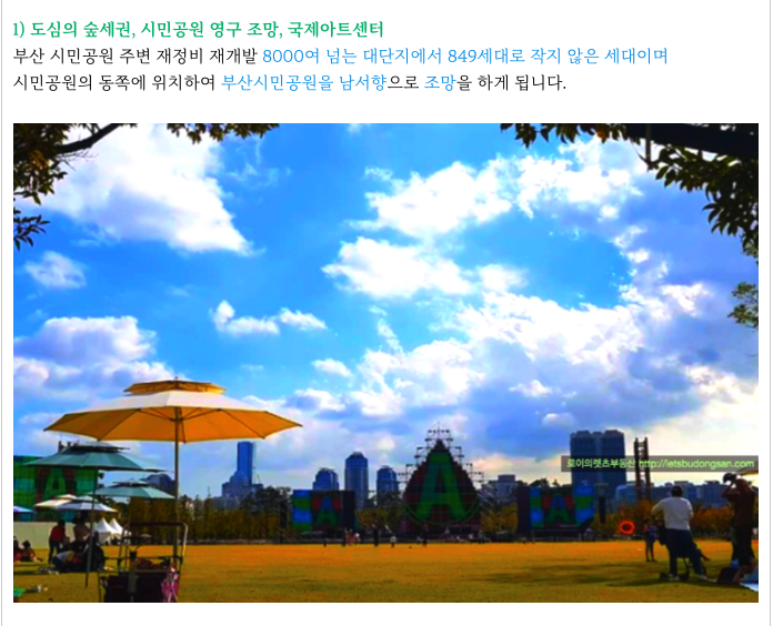 시민공원 주변 재개발의 특징 을 다시 한번 간략히 정리해 드립니다.