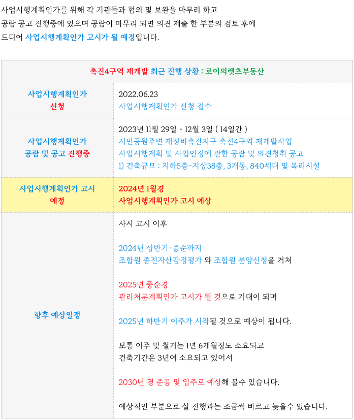 시민공원 촉진4구역 재개발 - 소액 매물 (2.9) & 사업시행계획인가 임박 소식