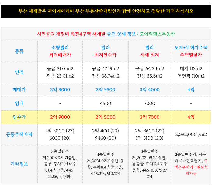 시민공원 촉진4구역 재개발 현재 추천 드릴수 있는 소액 물건 소개해 드리겠습니다.