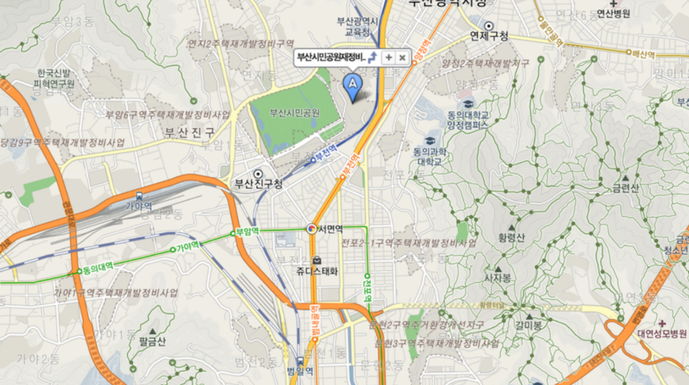 시민공원을 둘러 싸고있는 여러 재개발 ( 1, 2-1, 2-2, 3, 4 구역) 과 함께