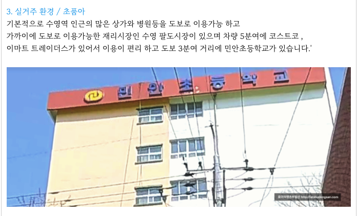 * 수영구 라는 시세 좋고 실거주 좋은 역세권에 위치한 곳이라는 장점이 가장 큽니다.
