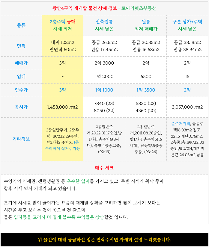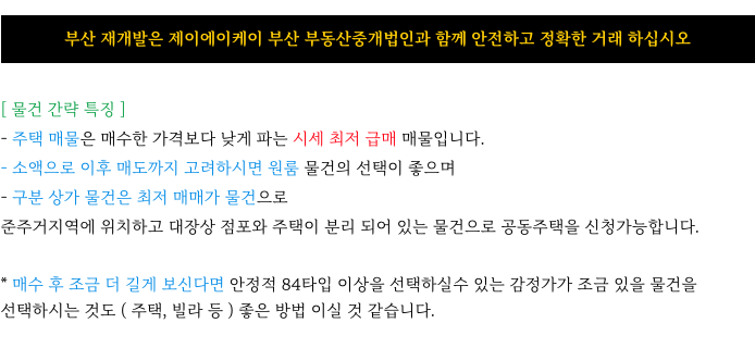 광안4구역 재개발 주택 최저 급매 물건 & 소액 인수가 매물 정보 소개해 드리겠습니다.