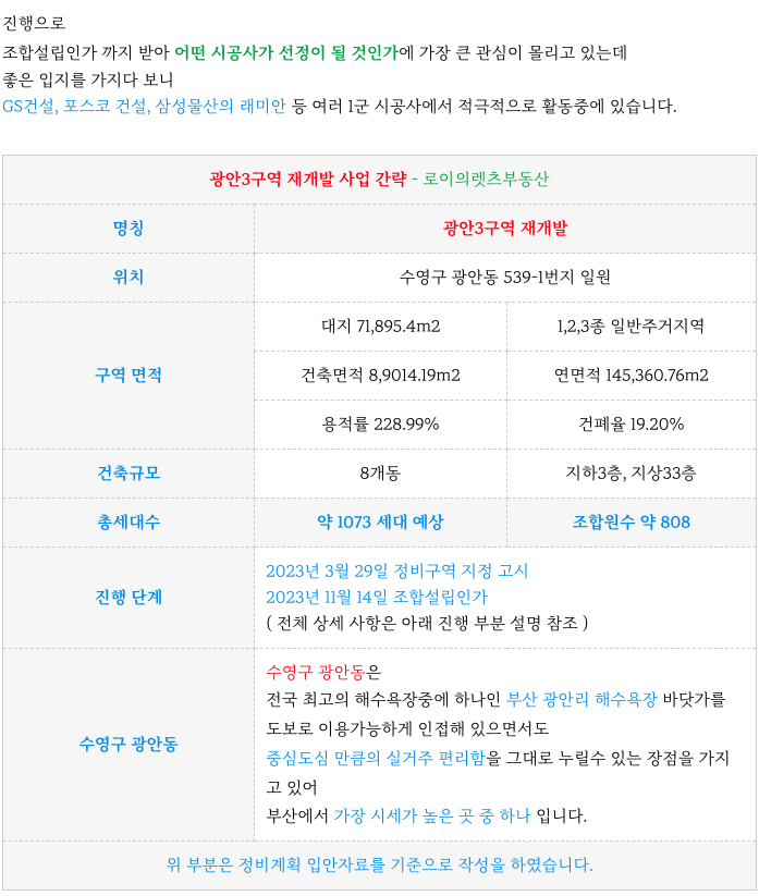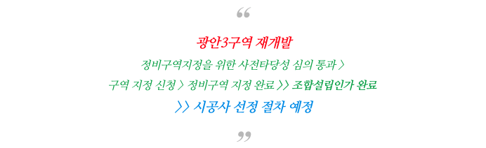 광안3구역 재개발 은 이제 시공사 선정 절차를 앞두고 있습니다.