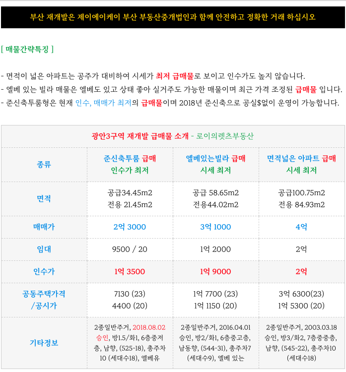 광안3구역 재개발 급매 소액 매물 소개 드리겠습니다.