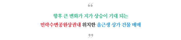 (부산 상가) 민락동 수변공원 올근생 건물 매매