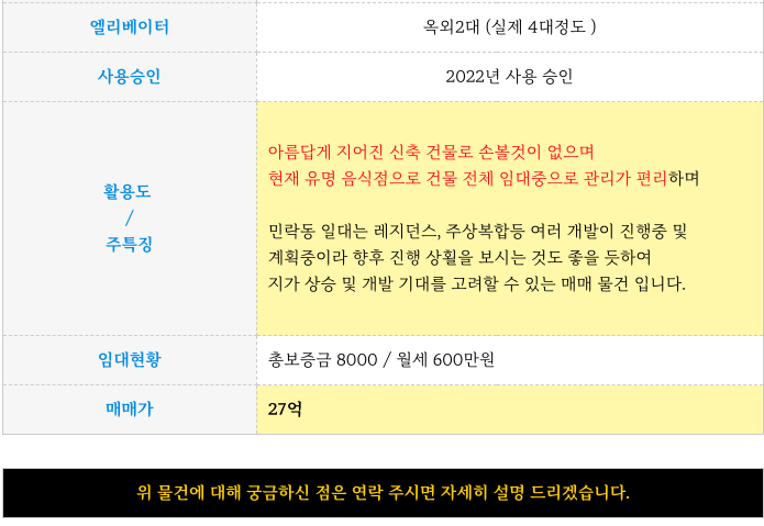 오늘 민락 수변공원 올근생 2개 상가 건물 매매 물건 정리해 드립니다.