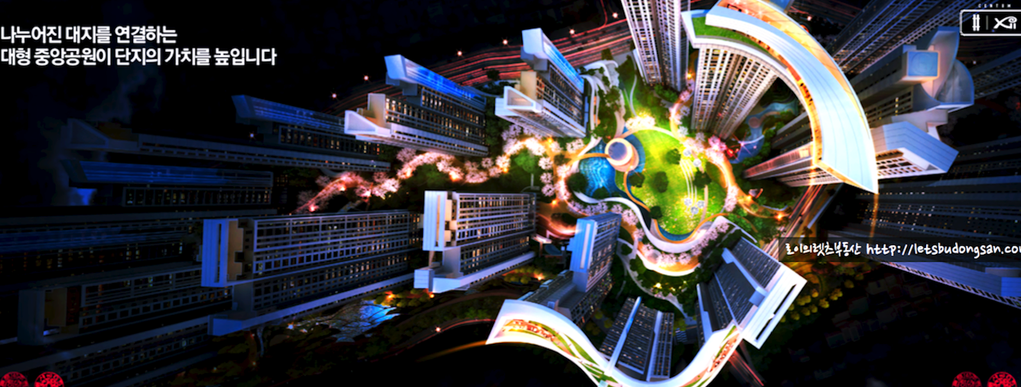 3개동을 연결하는 스카이브릿지와 외벽은 LED조명으로 큰 스크린이 되는 미디어사파트 적용을