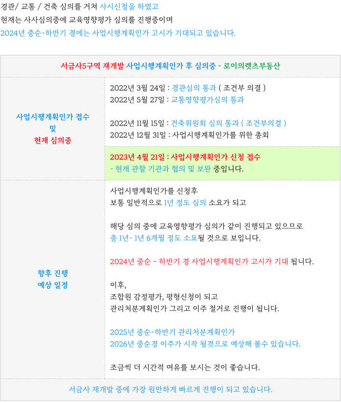 서금사5구역 재개발의 현재까지의 진행상황을 정리등 추가 정보는 아래 페이지를 참고 부탁드립니다.