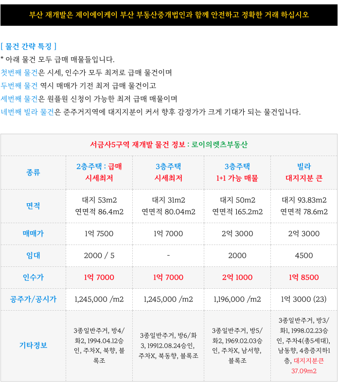 (급) 서금사5구역 재개발 급매 1.55인수 소액 매물 & 사시심의중