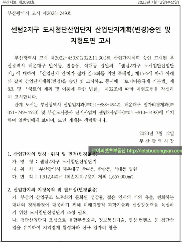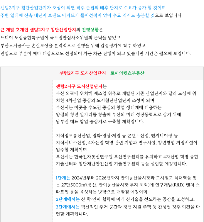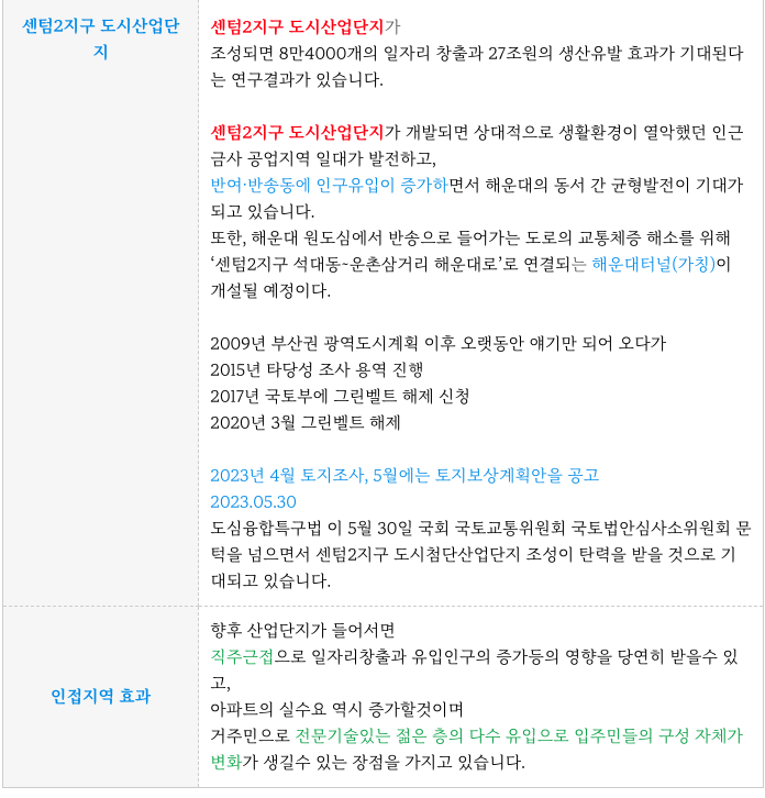 센텀2지구 도시산업단지의 내용을 간략히 정리하여 드립니다.