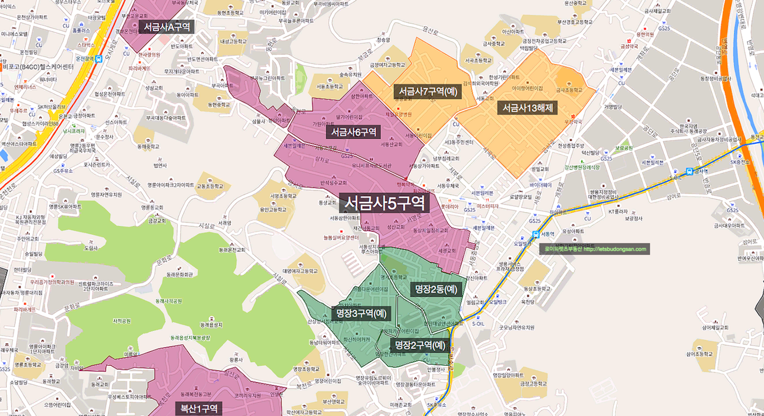 금정구 최대 단지 서금사5구역 재개발 이 위치한
