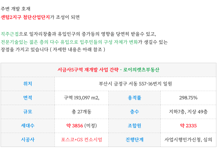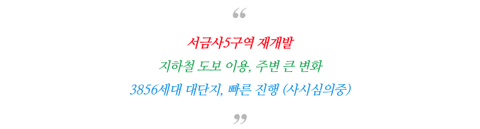 서금사5구역 재개발의 특징을 다시 한번 정리해 드립니다.