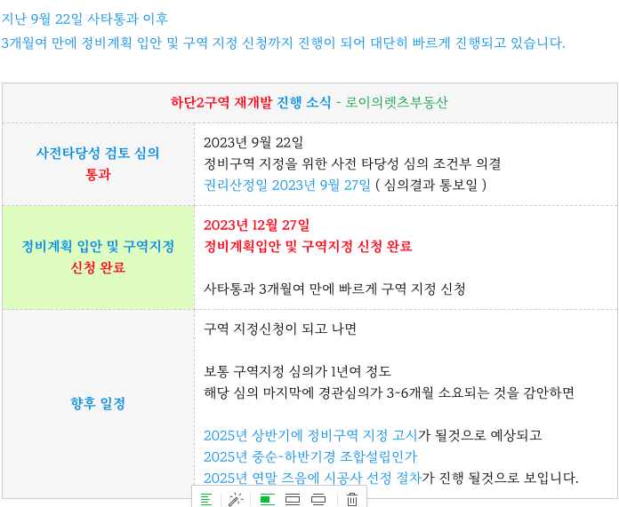 하단2구역 재개발 예정지 의 현재까지의 진행 상황 등을 정리등 추가 정보는 아래 페이지를 참고 부탁드립니다.