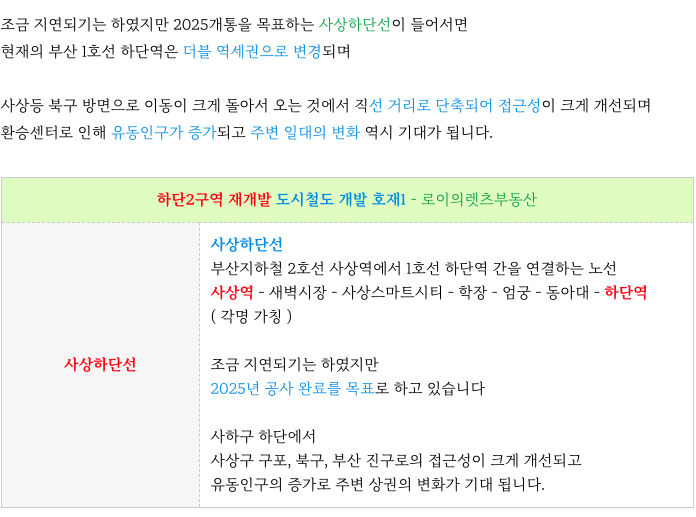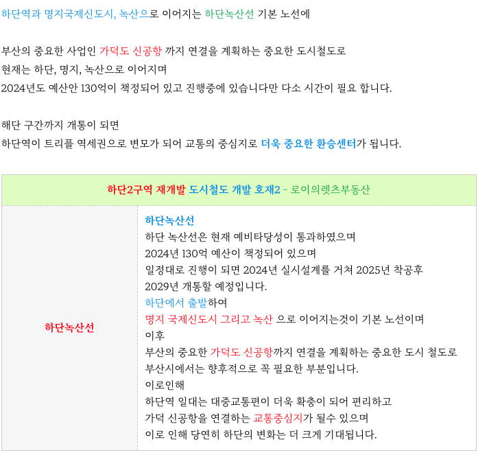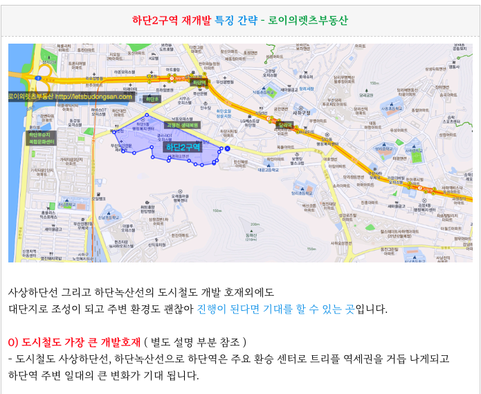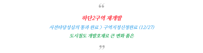 이렇듯, 하단2구역은 도시철도 개발호재로 큰 변화 품은 곳으로 기대가 되고 있습니다.