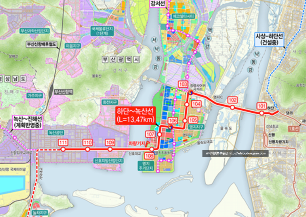 하단에서 명지와 녹산까지 이어지는 도시 철도 입니다.