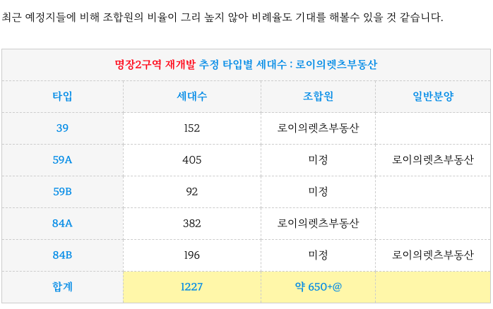 명장2구역 재개발의 타입별 세대수 소개해 드리겠습니다.