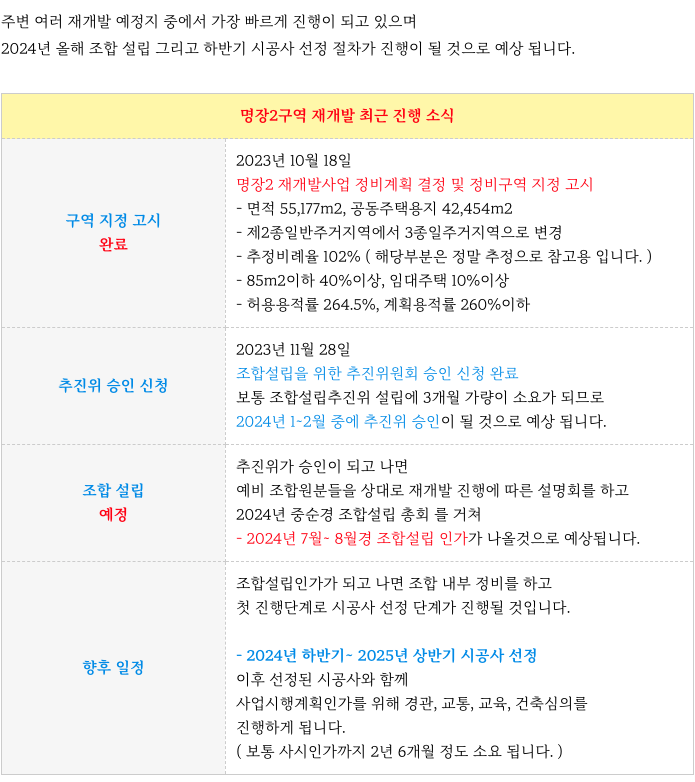 명장2구역 재개발 의 현재까지의 진행상황과 향후 예상 일정등 추가 정보는 아래 페이지를 참고 부탁드립니다.