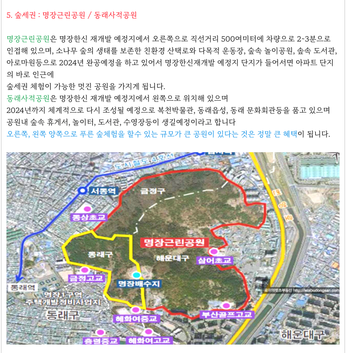가까이에 명장근린공원, 동래 사적공원이 위치해 있어서 숲세권의 장점을 가지고 있습니다.