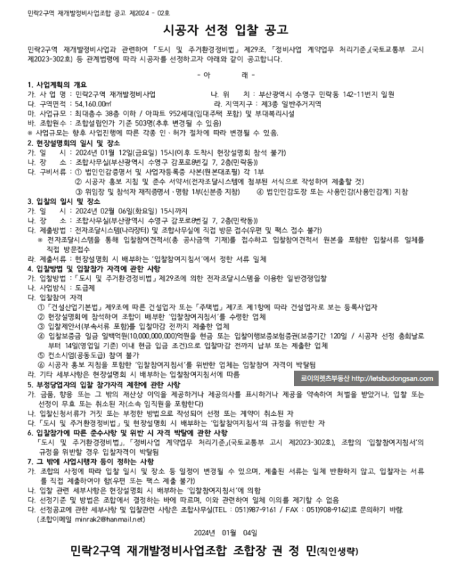 (시공사입찰공고) 민락2구역 재개발 - 시공사 선정 일정 & 시세 최저 매물