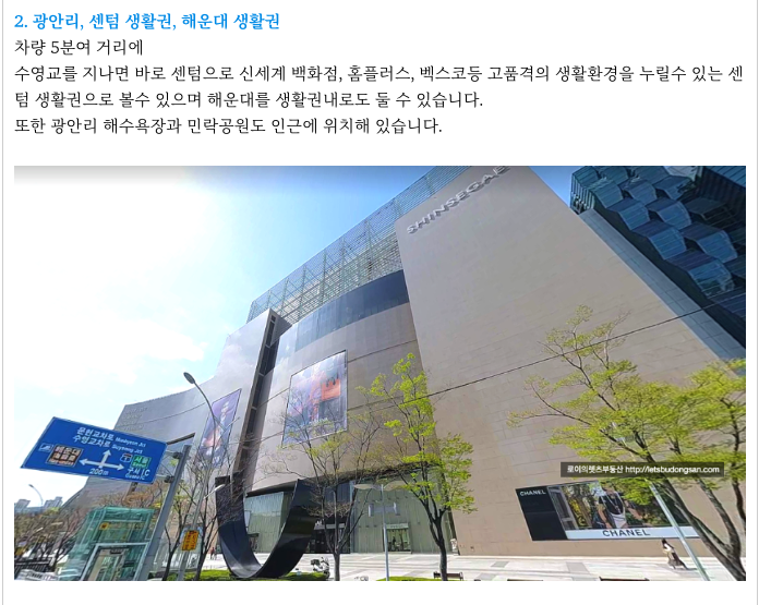 신세계백점, 롯데백화점등 좋은 해운대 상권을 편하게 이용가능한 센텀 생활권으로도 불릴수 있으며