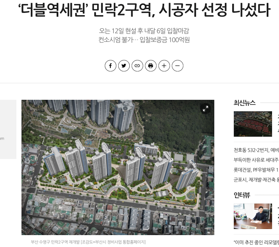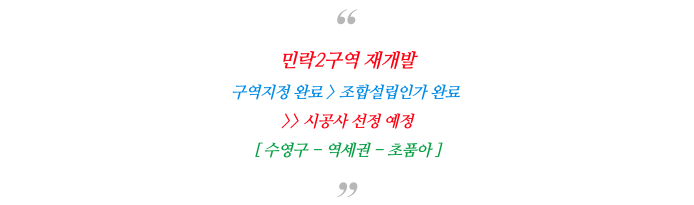 수영구 민락2구역 재개발 시공사 선정 진행 소식과 시세 최저 매물