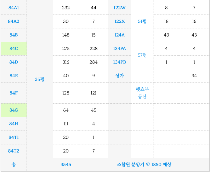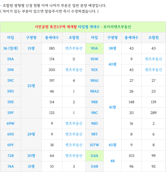 촉진3구역 재개발 의 타입별 세대수 정리 하여 드립니다.