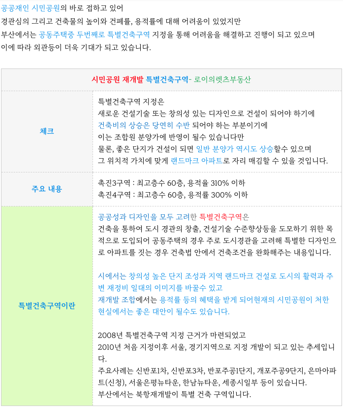 시민공원 촉진3구역 재개발 은 특별건축구역으로 진행 되고 있습니다.