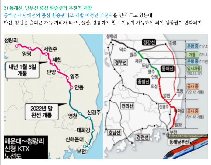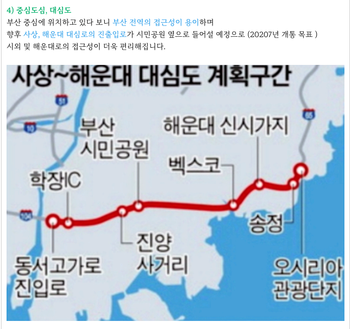 그리고, 기장에서 사상으로 이어지는 대심도 등 여러 개발 호재를 품고 있습니다.