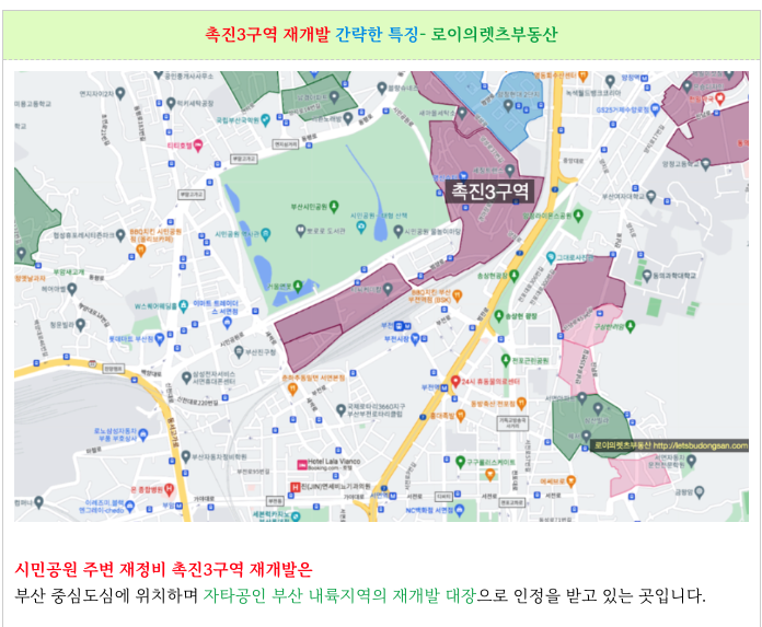 시민공원 촉진3구역 재개발의 간략한 특징 을 다시 한번 정리 드립니다.