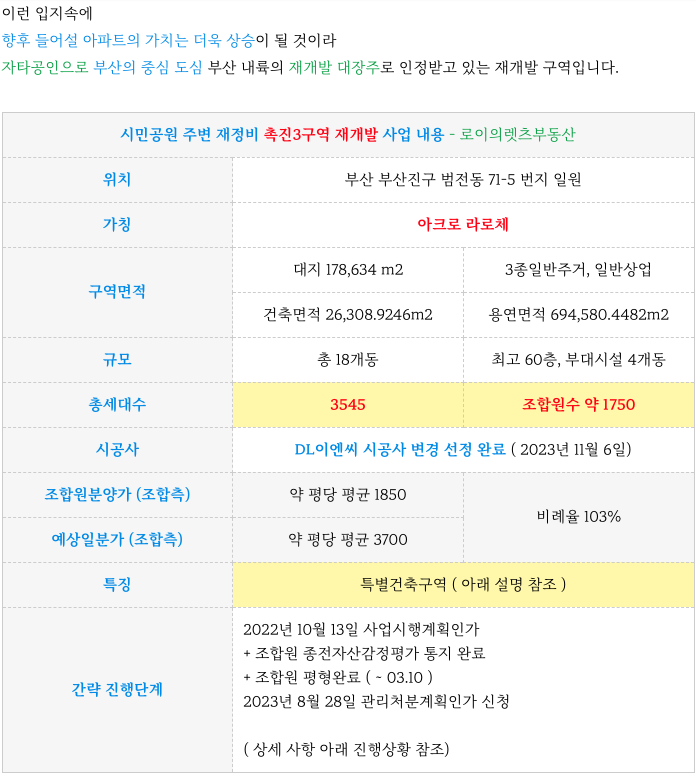 촉진3구역 재개발 시공사 DL이엔씨 제안 내용을 간략히 정리 드립니다.