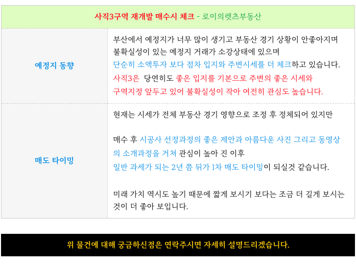안녕하세요. 로이의렛츠부동산 ( 제이에이케이 부산 부동산중개법인 ) 입니다. 사직3구역 재개발 [ 초역세...