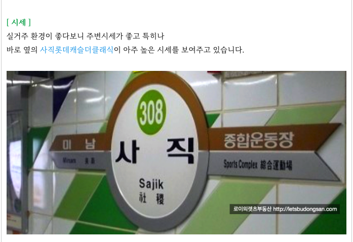 - 역세권, 학군, 실거주 좋은, 시세 좋은 사직동