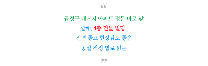 - 금정구 대단지 아파트의 정문 바로 앞으로 공실 걱정 별로 하지 않아도 되는