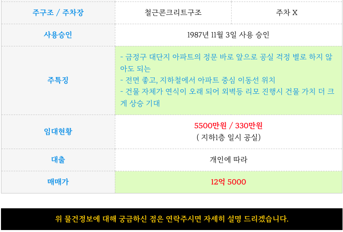 - 건물 자체가 연식이 오래 되어 외벽등 리모 진행시 건물 가치 더 크게 상승 기대