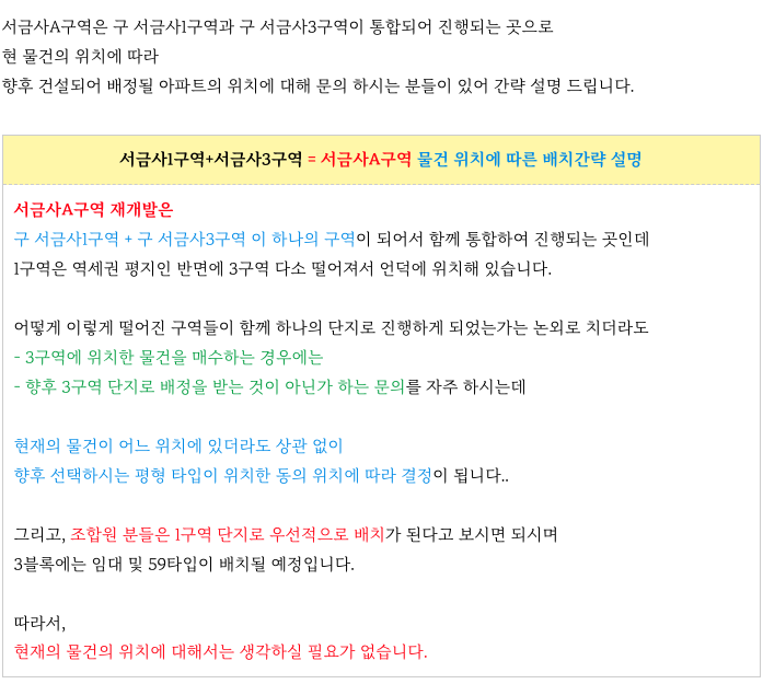 서금사A구역의 조합원 배치 부분 설명 드립니다.