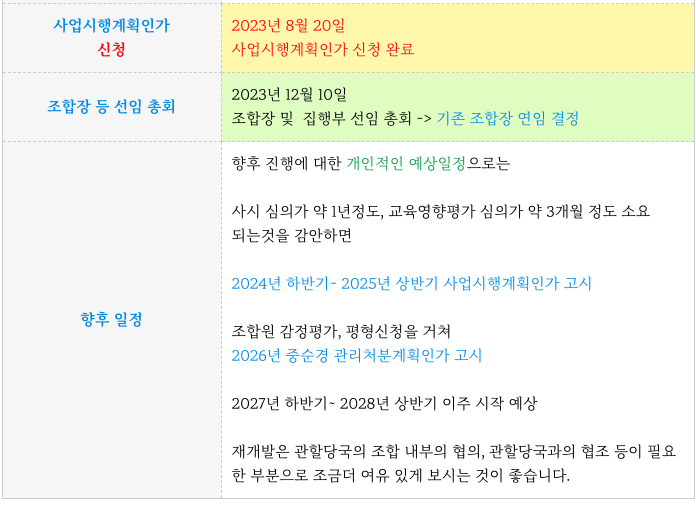 2024년 하반기 또는 2025년 상반기에는 사업시행계획 인가 고시가 기대가 됩니다.