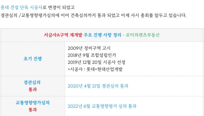 서금사A구역 재개발의 진행상황을 현재까지 간략히 정리하였습니다.