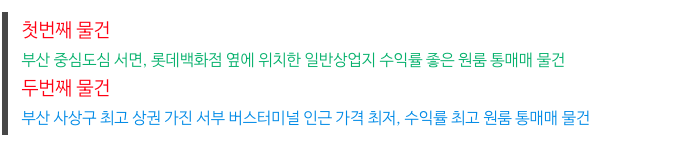 오늘의 2개 물건 정보 정리하여 드리겠습니다.