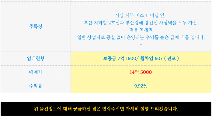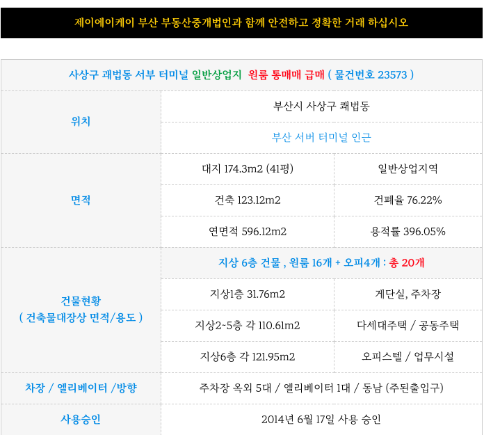 금사상구 괘법동 서부 터미널 일반상업지 원룸 통매매 급매 물건 정보 소개해 드립니다.
