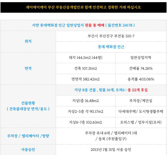 부산진구 서면 공실없는 원룸 건물 매매 ( 원룸통매매 )