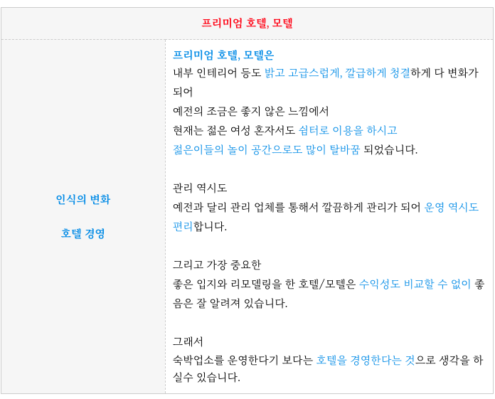 호텔, 모텔 운영은 예전의 단순 숙박시설을 운영한다는 개념에서 호텔을 경영한다는 개념으로