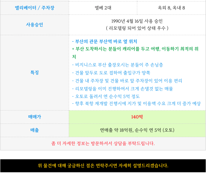 오늘 부산역 바로 옆 호텔 건물 빌딩 매매 정보 정리해 드리겠습니다.