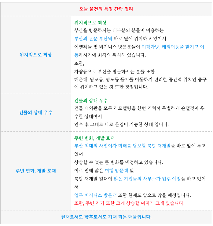 그리고 북항재개발 등으로 인해 향후 수요 와 지가 상승의 기대도 크게 기대할 수 있기도 합니다.