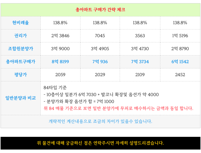 조합원 분양가는 평균적으로 1000만원 초반대로 상당히 매력적 이고