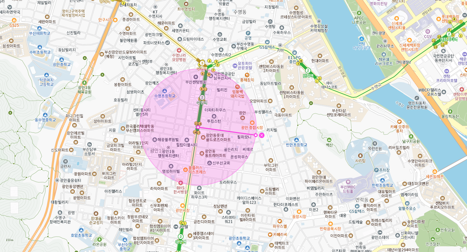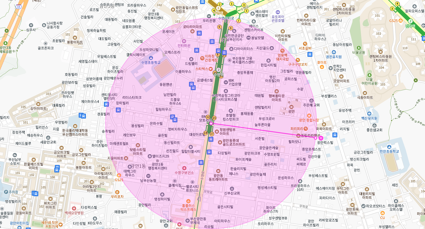 모두 수영구 광안동에 수영역 역세권 위치하고 있으며