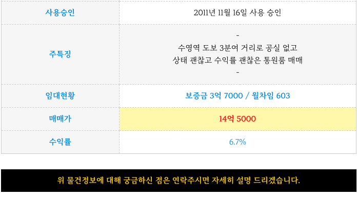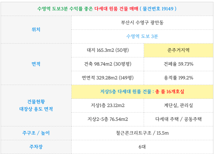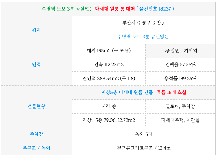 수영구 광안동 원룸 건물 매매 ( 원룸통매매 ) : 역세권