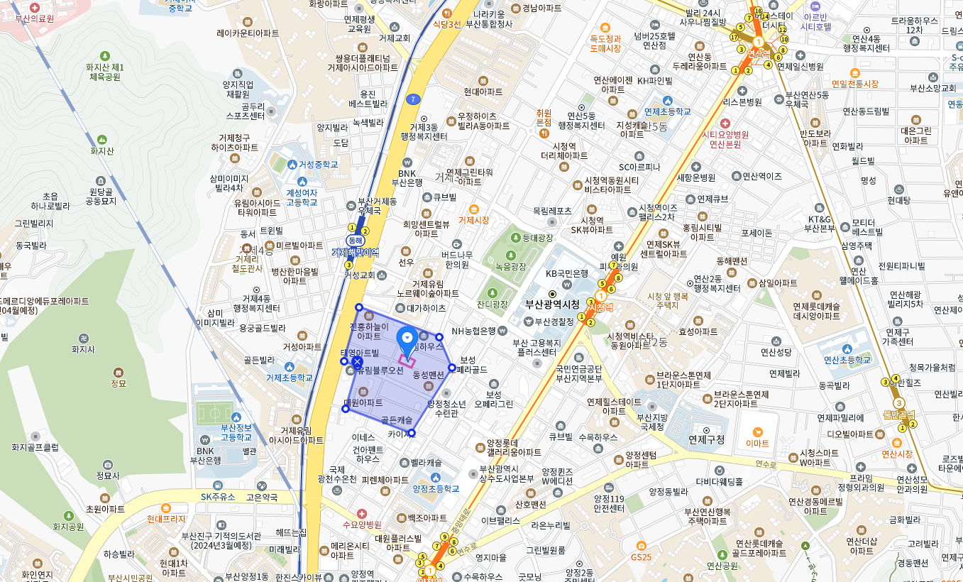 경찰청, 시의회, 연제구청, 국세청, 교육청까지 도보 이용가능한